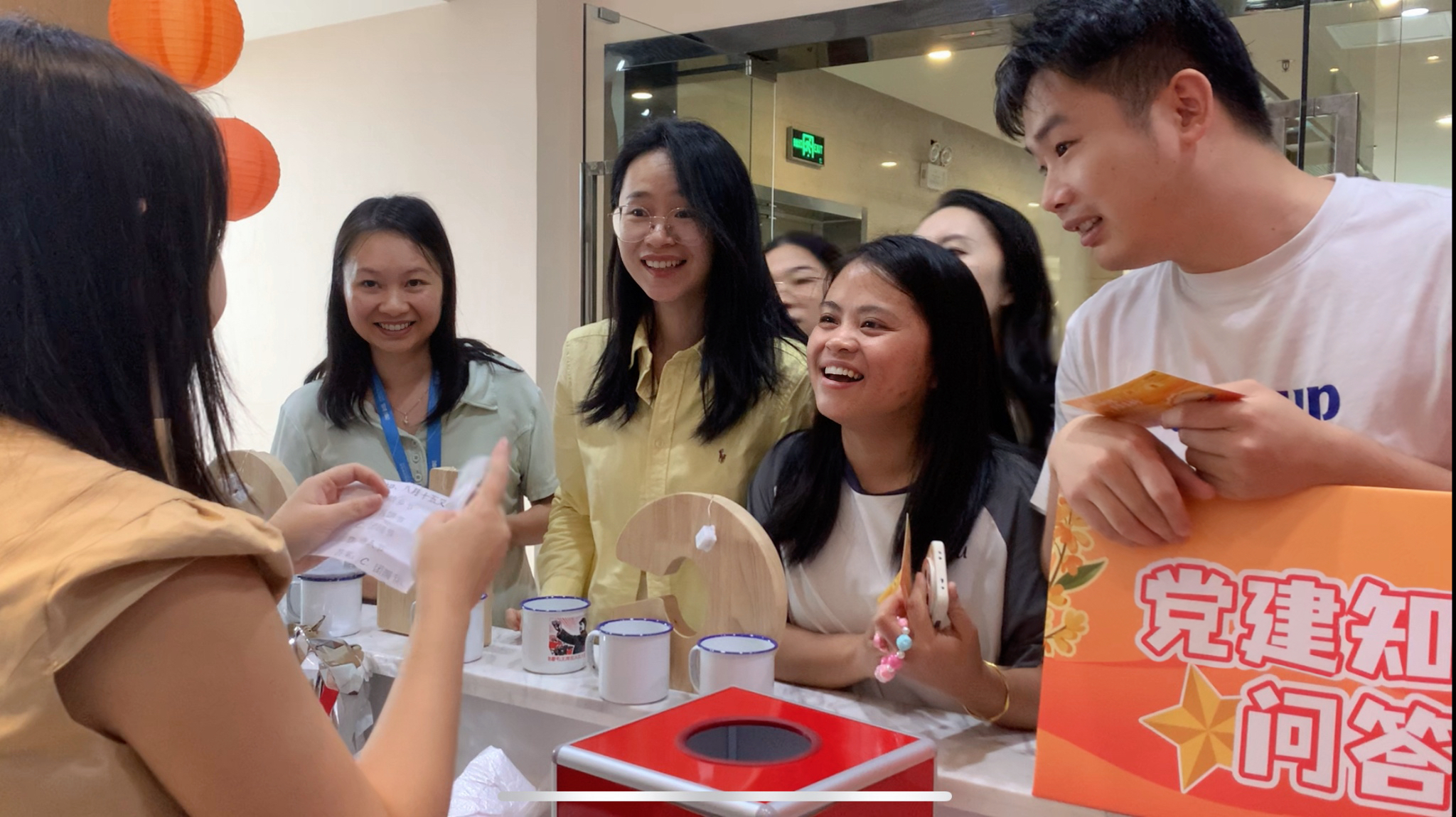 “党建知识问答”与公司中秋生日会活动同步开展,活动以“拼知识、悟初心,答对赢搪瓷杯”为亮点,打造双节里超有料的脑力对决,问答题目涵盖党史、党建知识等多方面内容,活动兼具知识性与趣味性,既检验了党员们的知识储备,又深化了党员职工们对于初心使命的感悟。党员职工们踊跃参与,答题过程中,大家应答迅速、表述精准,现场互动热烈。